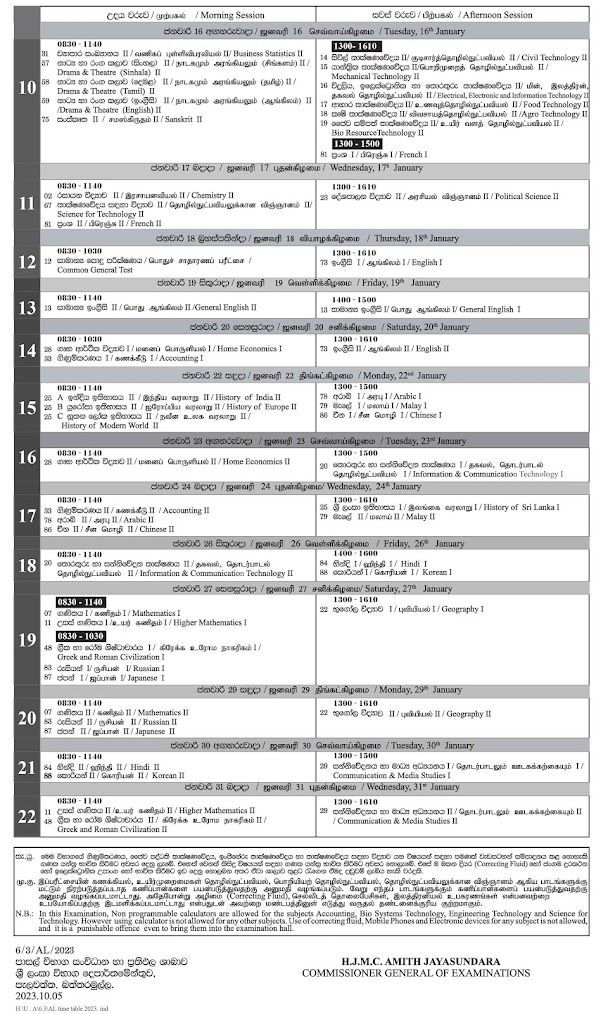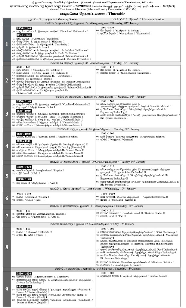 2023 (2024) උසස්පෙළ විභාගයේ කාලසටහන විභාග දෙපාර්තමේන්තුව විසින් ප්‍රකාශයට පත්කර ඇත.