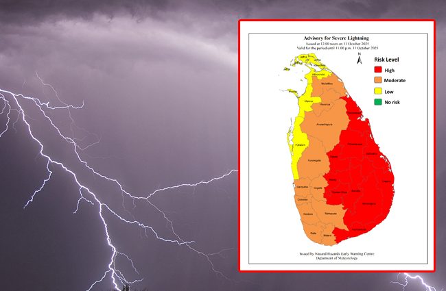 ප්‍රබල අකුණු පිළිබඳව අවවාදාත්මක නිවේදනයක් කාලගුණ විද්‍යා දෙපාර්තමේන්තුව විසින් නිකුත් කර තිබේ.
