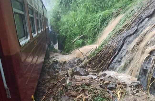 ඊයේ පස්වරුවේ දුම්රිය මාර්ගය ආසන්නයේ සුළු නායයෑම් තත්ත්වයක් හට ගෙන ඇති අතර ඒ අනුව මෙම දුම්රිය පීලි පැන තිබුණි.