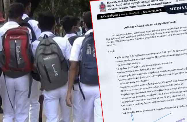 2026 වර්ෂය තුළ පාසල් පවත්වන වේලාව දීර්ඝ නොකිරීමට අධ්යාපන අමාත්යාංශය තීරණය කර තිබේ.