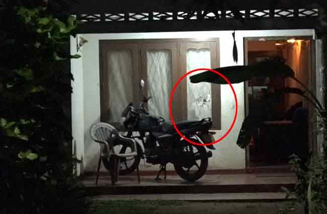 යතුරුපැදියකින් පැමිණි පුද්ගලයින් දෙදෙනෙකු විසින් එම නිවසේ ජනේලයට වෙඩි ප්රහාර කිහිපයක් එල්ල කොට පළාගොස් ඇති අතර ඉන් කිසිවෙකුටත් තුවාල සිදුව නොමැති බව සඳහන්වේ.