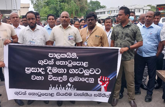 සීමාසහිත ගුවන් තොටුපොළ සහ ගුවන් සේවා සමාගමේ සභාපති විශ්රාමික එයාර් වයිස් මාර්ෂල් හර්ෂ අබේවික්රම මහතා විසින් ප්රකාශයට පත් කළ 2025 වසරේ ප්රසාද දීමනා ලෙස ලබා දීමට නියමිතව තිබූ සේවක වැටුපෙන් මූලික වැටුප් 05ක ප්රමාණය ලබා දෙන ලෙස බල කරමින් ගුවන් තොටුපොළ සේවක වෘත්තීය සමිති අද (29) උද්ඝෝෂණයක නිරත විය.